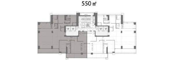其中1号公寓、商业楼,共67层,楼高245米,1号楼低区每层三户,高区每层两户,每一户都是独梯入户对景玄关,总共有三种户型,分别是低区的280㎡四房、390㎡四房以及高区的550㎡四房。
