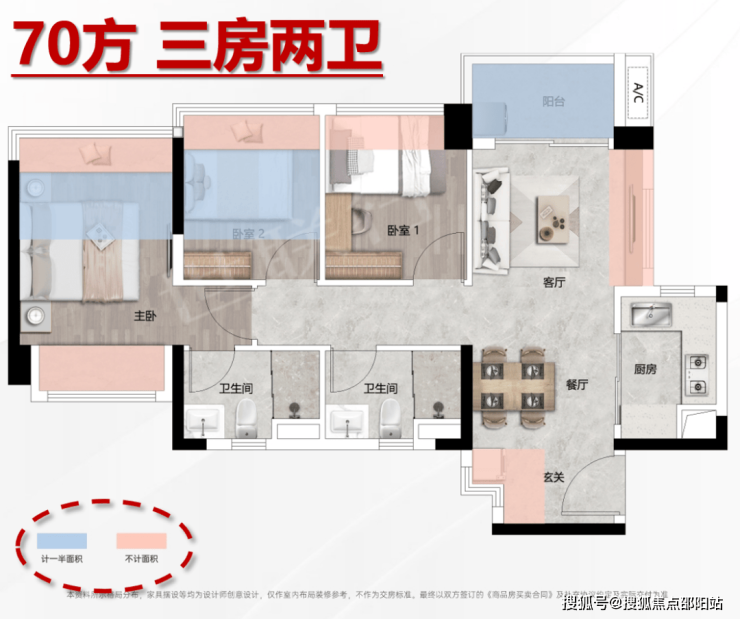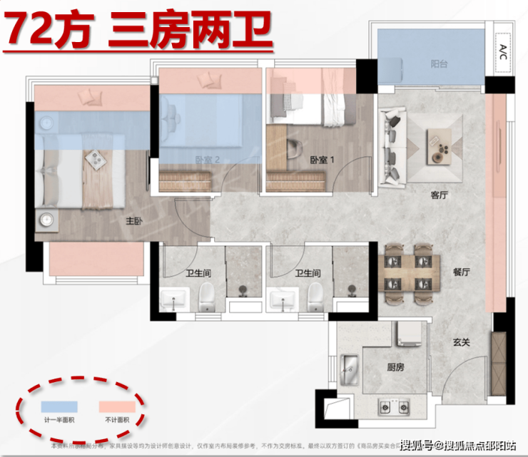 新推产品:约70/72/80㎡新规三房两卫,使用率101%-106%