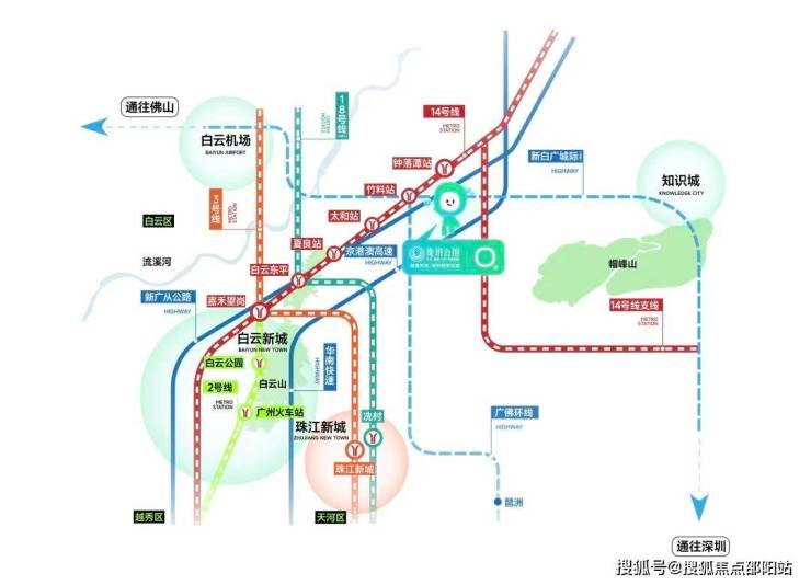 •5站嘉禾望岗·7站天河(地铁14号线直达嘉禾望岗地铁站。14号线4站到白云东平,换乘18号线(建设中)3站直达珠江新城(冼村站)