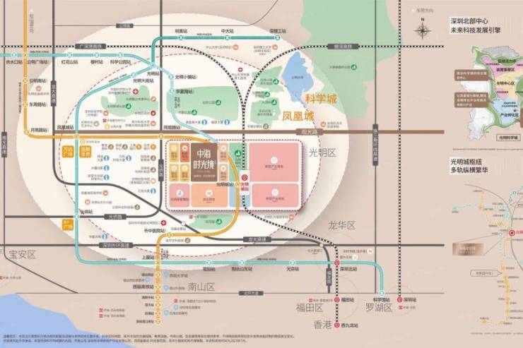 中海·时光境花园是中海地产开发商布局深圳光明的第三个住宅项目,位于光明区凤凰城观光路与科林路交汇处,项目西侧挨着华润润曜府,东南侧是高铁光明城站,约1公里范围内涵盖有光明新城公园,网红点虹桥公园,百花园公园,光明城高铁站及13号线“光明城站”。