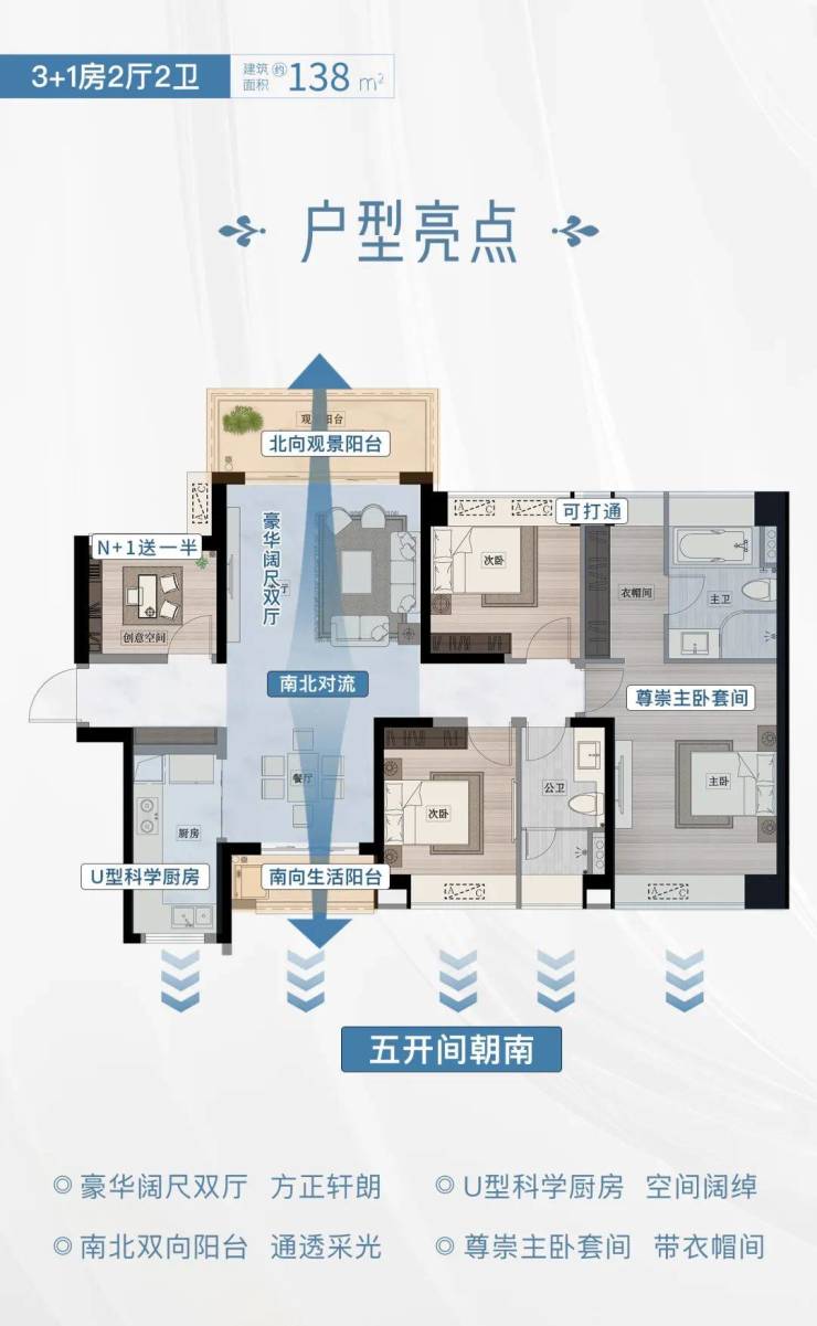 南北双阳台 · 5开间朝南 · 高赠送 · 超大主套 · 百变空间 · 大厨房