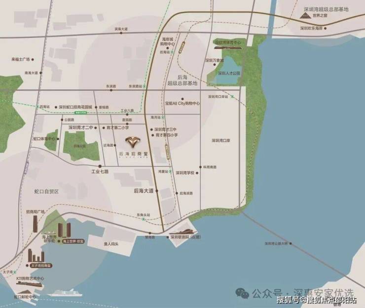 后海招商玺位于南山区招商街道后海大道以西、工业七路以北,地处深圳湾超级总部基地辐射范围,周边3公里内覆盖深圳湾体育中心、深圳湾公园、太子湾邮轮母港等城市地标,形成了“高端居住+滨海休闲+国际商务”的复合生态圈。