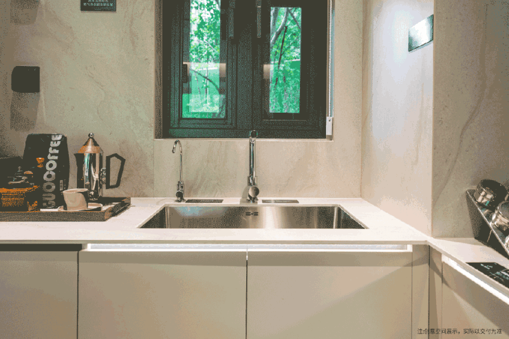 厨房是家的情感中心,这里选用的德国AEG三件套(燃气灶、油烟机、洗碗机),将德系精工与烹饪艺术完美融合。
