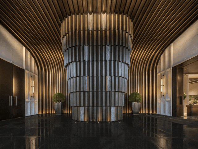 来到这里,首先会被铝板与弧形玻璃构成的公建化流体立面所吸引,这种现代地标感,往往是顶级豪宅的标配。