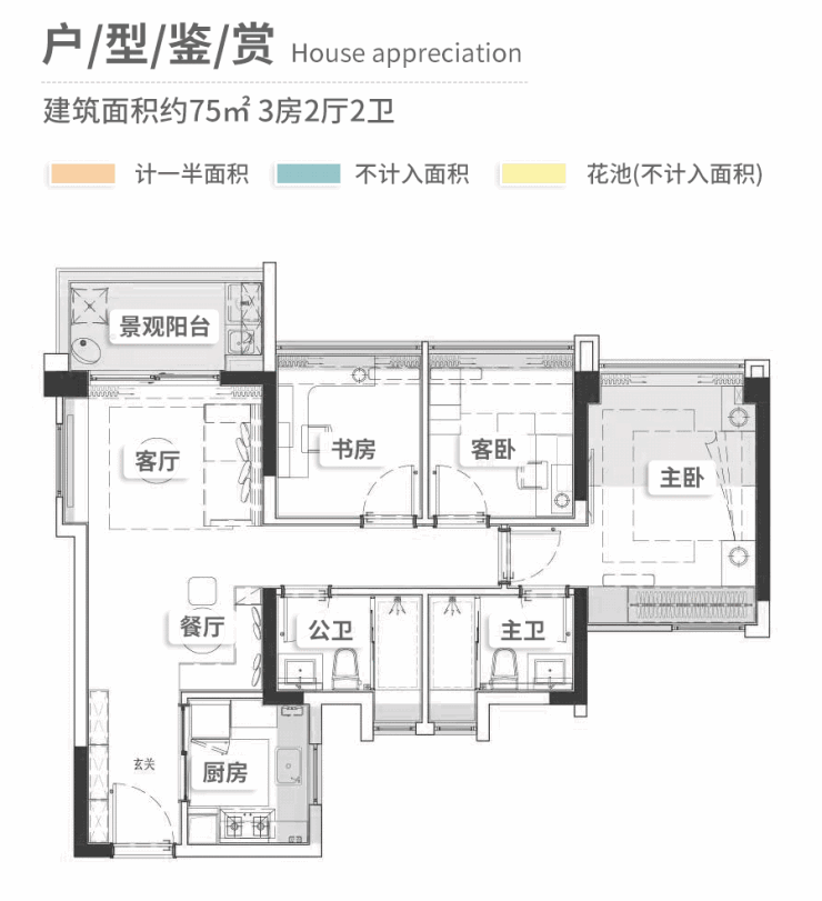 户型面积 75—105㎡3/4室