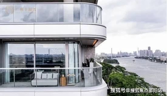 更震撼的体验,是当你步入阳台时。弧形玻璃的设计,让江景全画幅被你的视觉所占有,带来极强的视觉冲击力。驻足于此,你不需要去眺望江景,而是开阔的珠江直接将你环抱。