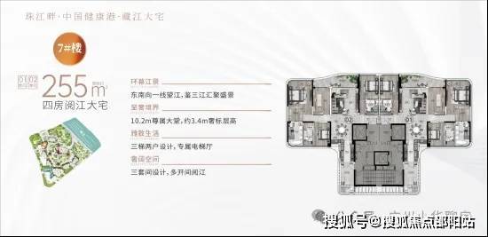 户型:建面约233-285㎡四至五房,东向/东南向一线望江,极致3.4-3.6m层高