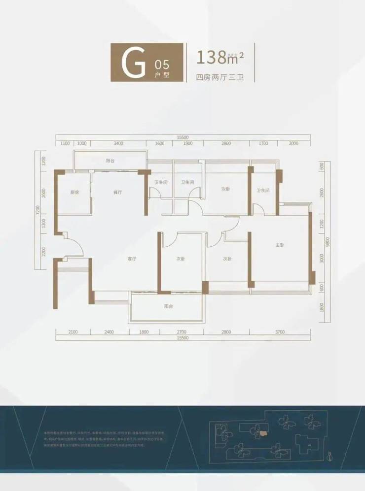 G-05户型为138㎡4房2厅3卫