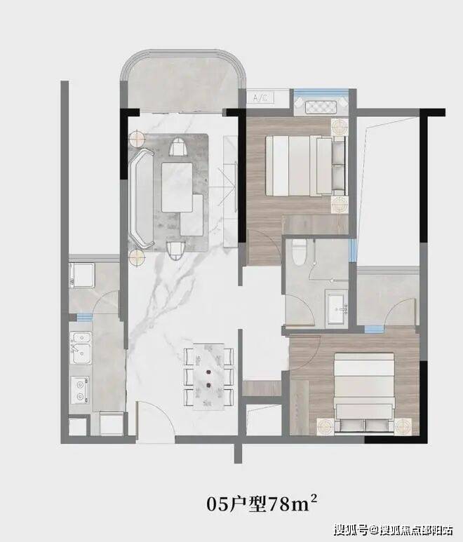 05户型:约78㎡,两房两厅一卫