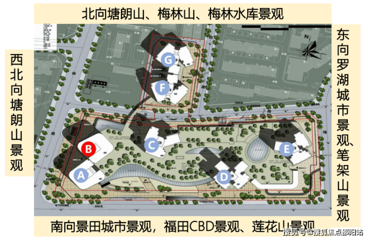 景观资源:北侧远眺梅林水库,东南远望莲花山公园,南侧可观香蜜湖片区及高尔夫球场,具有良好的景观资源,具备建设超高层的景观优势