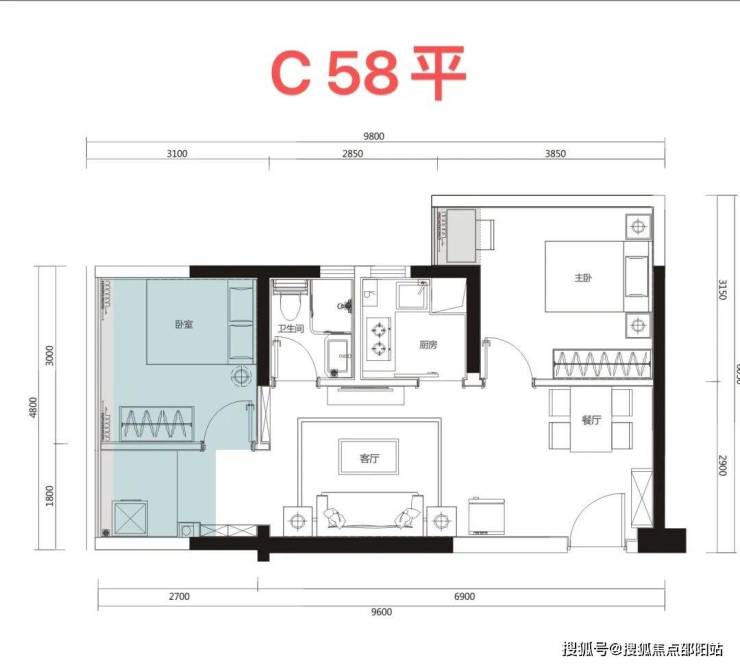 主力户型:约52-75㎡2-3房,位于B座45-46层高楼层,全屋高标精装配置齐全