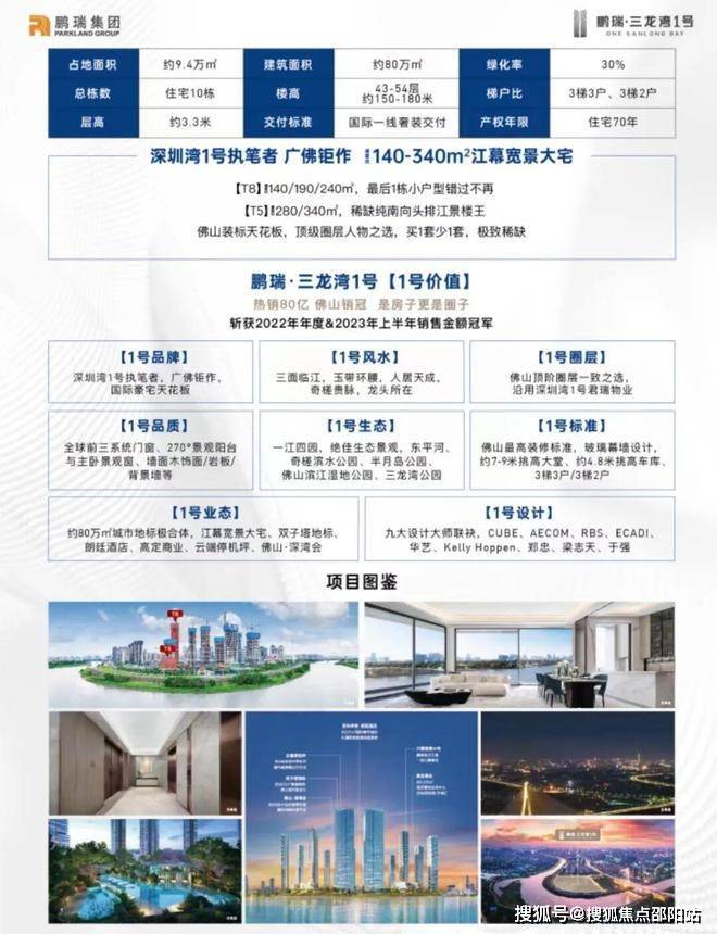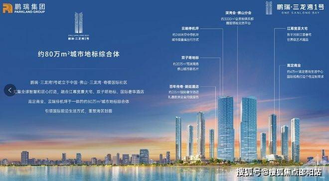 鹏瑞三龙湾壹号广场是位于佛山禅城区东平路西北侧的超级综合体项目,规划有12万㎡的超甲级写字楼、超2万㎡酒店、超4万㎡商业以及住宅等多种业态。项目拥有两栋高达248米的超高层双子塔,位置优越,三面临东平水道,景观资源丰富。整体规划涵盖了多种业态,包括写字楼、商场、会所和住宅等,将引进朗廷酒店品牌,并设有深湾会·佛山分会会址。项目位于富人区奇槎国际人文社区,毗邻佛山的千灯湖、亚艺和陈村等老牌富人区,被视为未来的高端富人区。