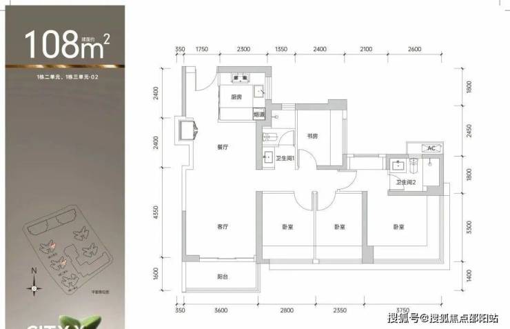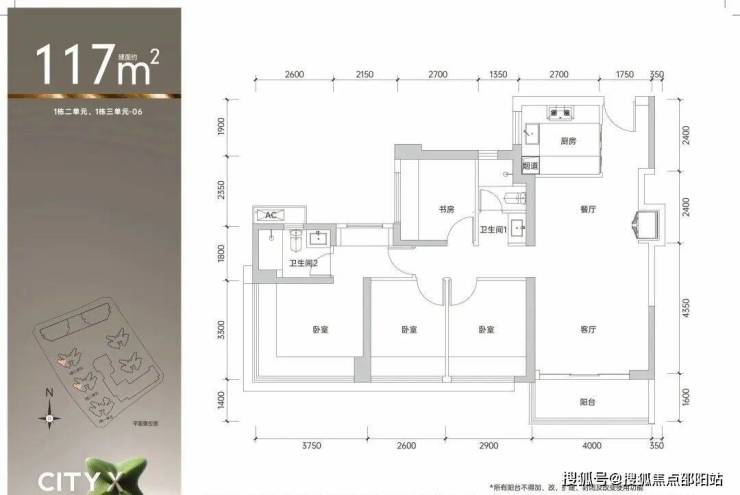 建筑面积约99㎡的3房2卫02/03/05/06户型:全南向爆款空间