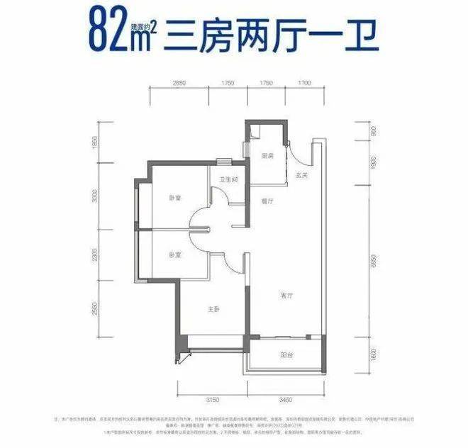 建面约82㎡三房两厅一卫