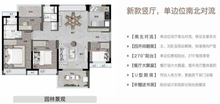 5,户型设计合理:空间利用和功能性布局较好,居住空间更加舒适实用。例如,部分户型南北通透、通风性好;有的户型卧室带有大飘窗,采光面大且空间尺度感更好;还有的户型做到了动静分离,能使家人互不干扰。
