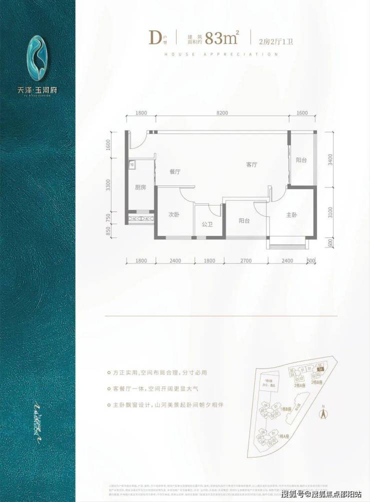 V型塔楼布局,南向阳光户型,约80%高实用率,双阳台,光明罕有绝版户型。建面约80-143㎡河岸美宅,赠送高标准绿建简装,向往的生活在这里触手可及。