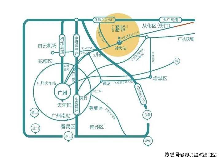 凤凰立交——家门口的高速路口,距离项目约2公里,半小时通勤广州天河商务区,1小时贯穿粤港澳大湾区各大城市城区;