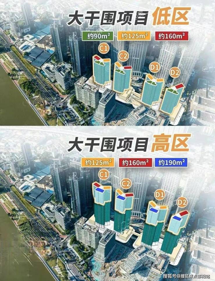 项目共规划4栋住宅楼,均为37层,分高低区设计,而且梯户比跟户型都各不相同: