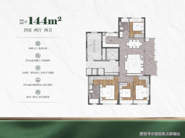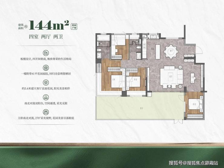 ②稀世洋房:建面约129-143㎡,一梯两户纯板楼 ;