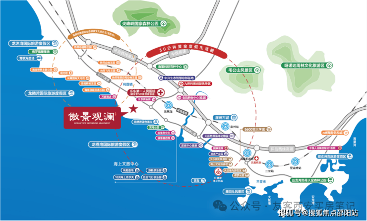 项目地处龙栖湾九所中心大道,毗邻南山寺、天涯海角、大小洞天、西岛、尖峰岭等多个国家级景区,乐东中医院(原解放军总医院医联体)、乐东人民医院、九所科教创新区、九所中心小学、九所中学在侧。