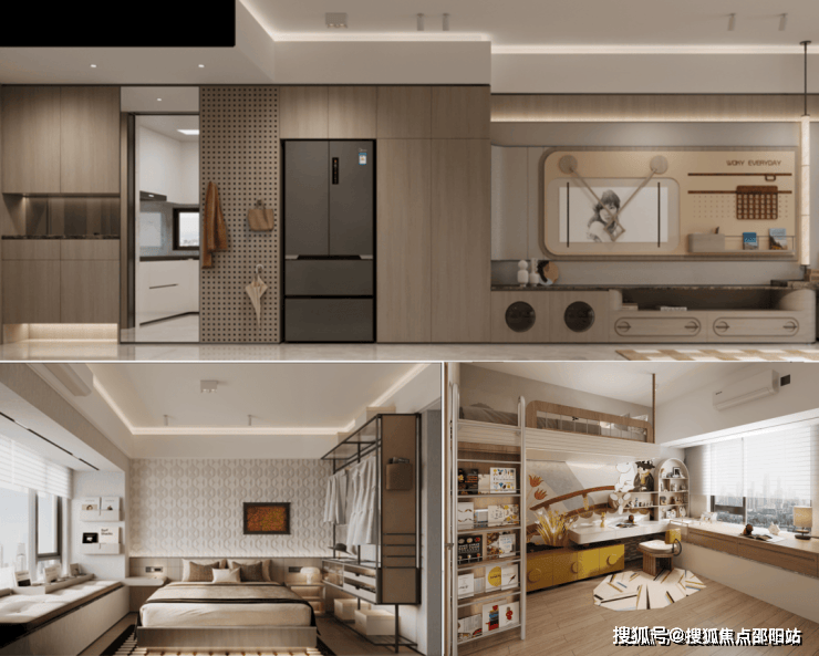户型内部更是细节满满,比如预留S型冰箱位,减少空间的隔断感,使室内的动线更加流畅,提高美观度。