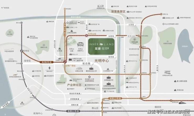 光明区科学城新贵,双地铁口红花山公园旁,龙湖观萃苑作为光明科学城产业转化区的首个国标新规纯商品房住宅,即将于2026年5月入市。项目紧邻地铁6号线红花山站,步行5分钟可达,距离在建的13号线新庄站约1公里,二期预计2026年6月正式开通,届时可快速通达南山科技园、深圳湾超级总部基地等核心区域。总占地约2.05万㎡,总建面约9.21万㎡,总高25层,层高3米,容积率低至3.1,纯商品房住宅小区,总户数约564户,预计2028年中旬精装交付。