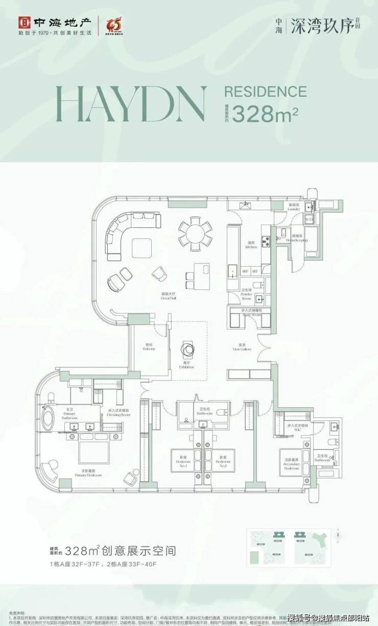 ①328平4+2房4卫,楼王户型,位于1栋A座01/02户,正南朝向,看小区园林景观。独立保姆套间,外立面采用270度玻璃幕墙,采光和通透好!
