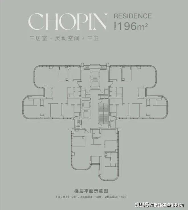 户型面积段设计为196-252-328㎡3-4房和400-600㎡顶层复式