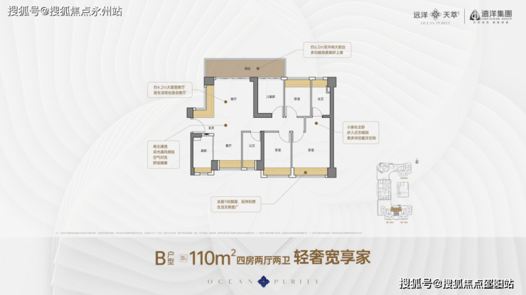 110㎡4房2卫,竖厅南北通透格局,客厅开间4.2米,次卧出6.5米长的大阳台,主卧大套间设计,全屋9处飘窗,阳台主朝北向。