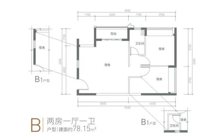 户型:49-50㎡1房,78㎡2房