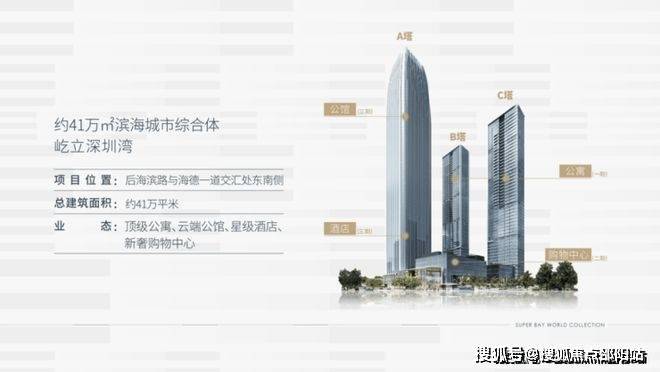 恒裕深圳湾是深圳市南山区后海中心区的顶级豪宅项目,由深圳市恒裕实业(集团)有限公司开发,定位为集超甲级写字楼、高端公寓、都会商业于一体的滨海城市综合体。项目总占地约2.5万㎡,总建面41万㎡,包含三栋超高层建筑(最高310米)及下沉式商业,是深圳湾片区稀缺的地标性物业。