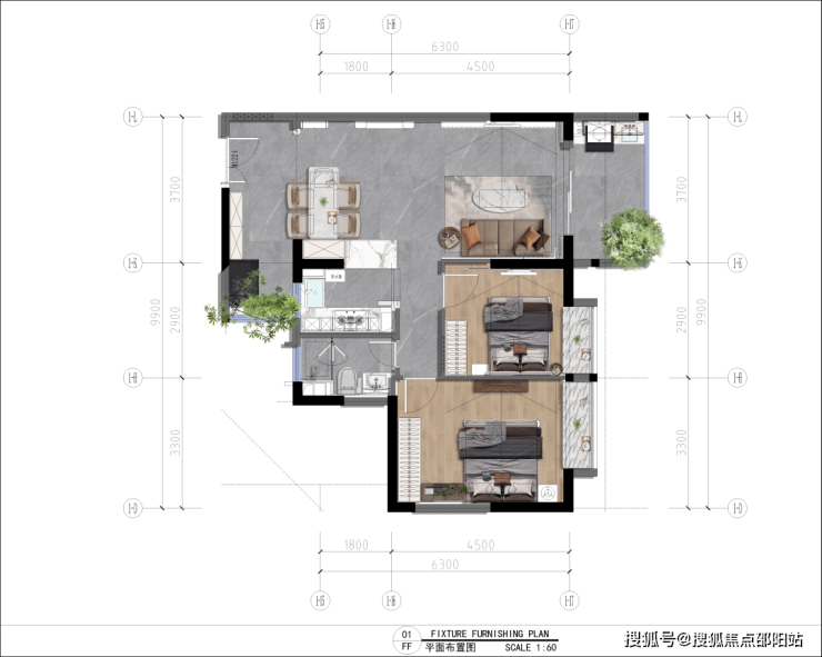 【A-2 建面约60㎡,实际使用面积77㎡, 两室两厅一卫】