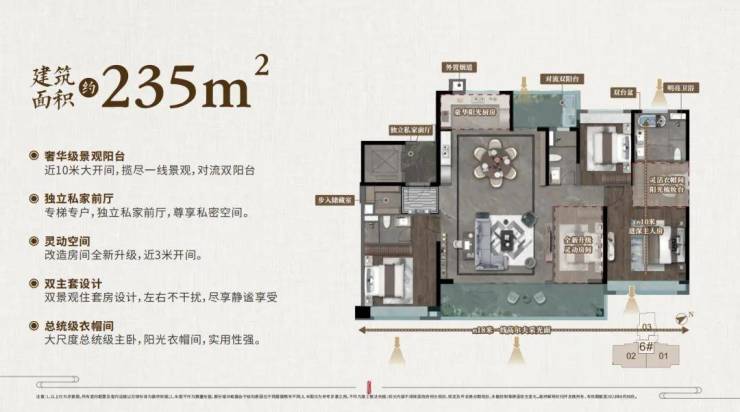 保利华南3.0豪宅时代,235产品升级,最具尺度感的餐厨客一体空间,超强总统套房级主卧,得房率超高产品