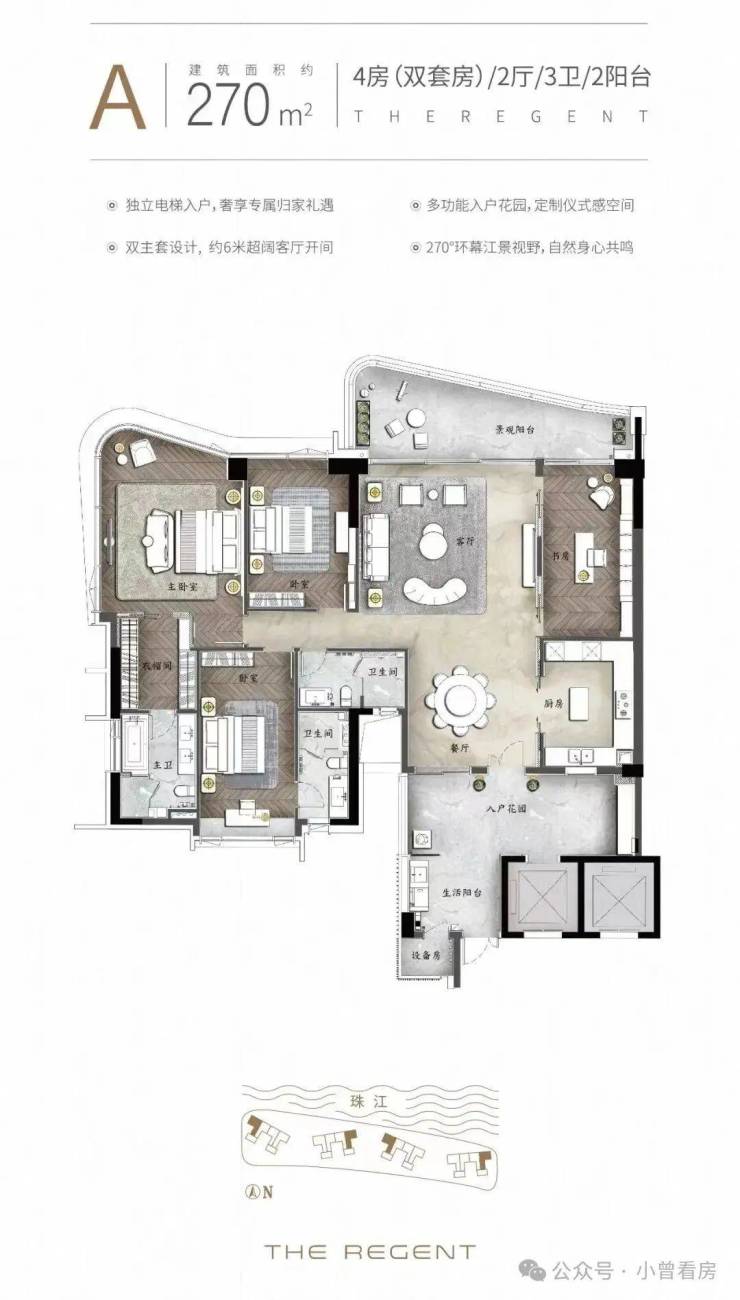 190㎡户型南北对流双阳台,南看2万方花园绿洲,北望珠江新城CBD,这就是触手可及的豪宅“天花板”该户型设有入户玄关和储物间,通过将客厅、餐厅、厨房和阳台一体化设计,LDKG布局创造了一个开放、共享的生活空间,使家庭成员可以更容易地聚集在一起,享受家庭时光。