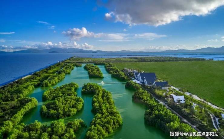 生态配套;约15.8公里黄金海岸线;约10万亩湿地公园;崖山、古兜山、汤瓶山三山围绕,森林覆盖率更是高达90%,空气负离子成分是广西巴马长寿村的10倍还要多;全球罕见山海温泉資源,涵盖几十种多种矿物质与微量元素,媲美日本北海道的温泉度假体验。