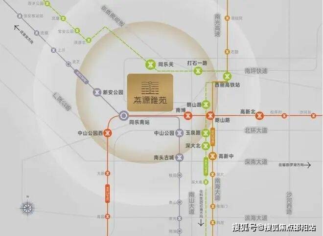缙樾府落位深湾核芯,周边三轴拱卫,深圳五大顶级总部基地环绕,联动西丽高铁新城增长极,形成立基于深湾之上的产业价值能级跃升。