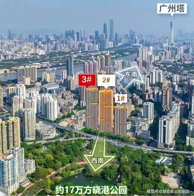 景观升级:东望中大、广州塔;北望二沙岛珠城,西南向直望晓港公园
