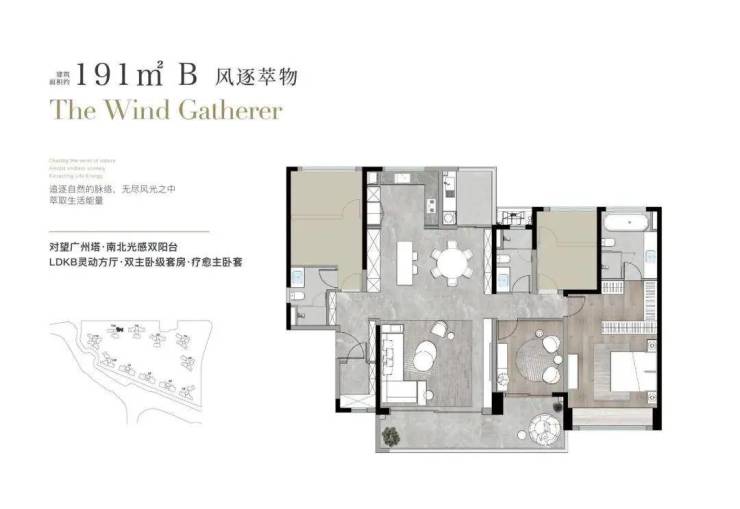 户型多样:户型涵盖建面约125㎡到270㎡,以大平层为主,定位品质改善,满足了不同家庭结构和需求的高端市场居住需求。全系产品坚持LDKG一体化设计,让家庭生活空间无限延伸。