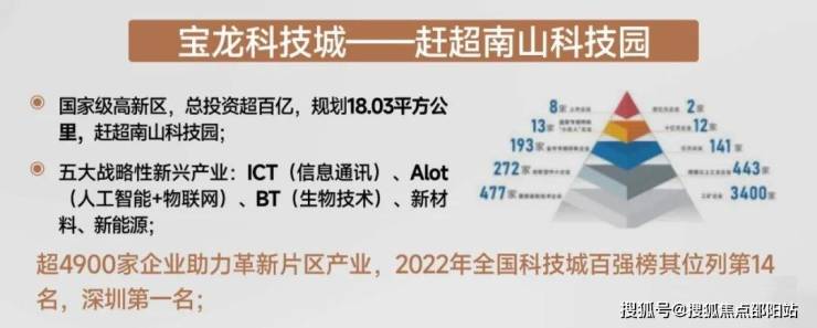 2022年宝龙科技城位列全国科技城百强榜第14名,深圳第一名,2022年宝龙街道规上工业增加值增速居全区第一,规上工业总产值全区第二。