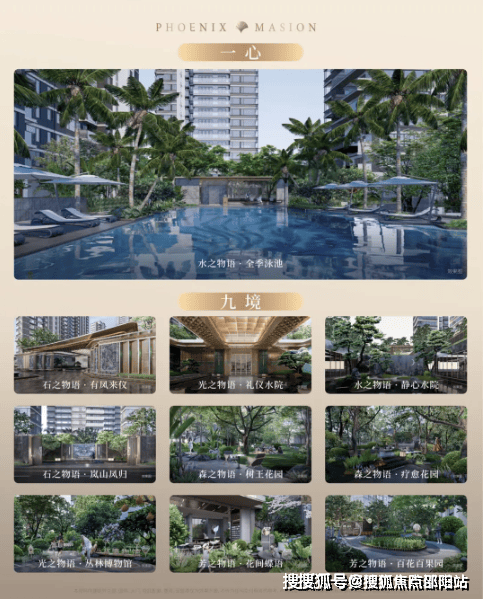 为了提升居住者的归属感与幸福感,“凤凰于飛”在公共设施与服务上也下足了功夫。项目引入了“春知学堂”这一特色IP,打造了一个家门口的“自然博物馆”,让孩子们在自然中学习成长。社区内设有一心九境岭南生活院落,四季常青的全季泳池、树王花园、疗愈花园等,为业主提供了一个亲近自然、放松身心的好去处。