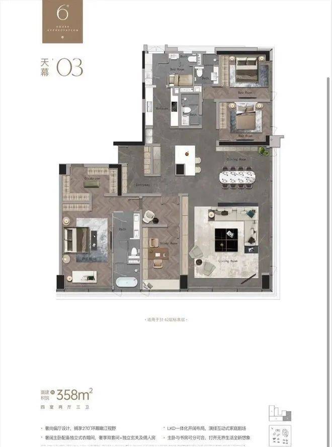 因为是旧改项目,这是金融城唯一一个可以建300平以下小户型的商业项目,所以也会看到项目百平以下的公寓和135~160㎡的商业平层。