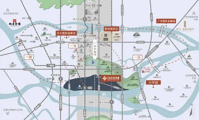 珠光·金融城壹号落子广州国际金融城东部门户要塞,西临珠江新城,北接天河智慧城,南为琶洲商圈,东接黄埔临港经济圈。