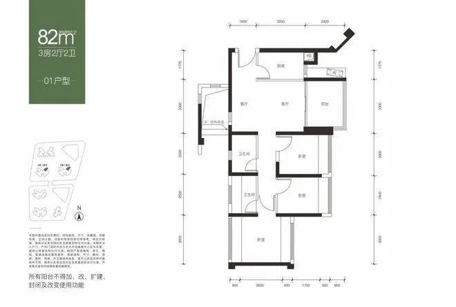 建面约82平户型图
