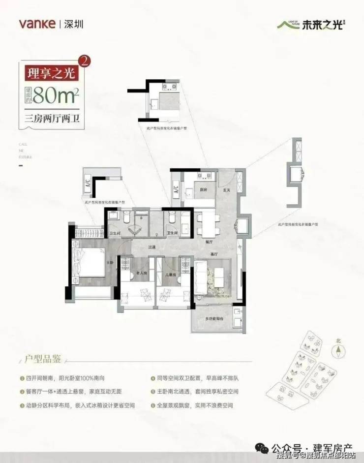 2⃣✨80平三房两卫 南北通✨