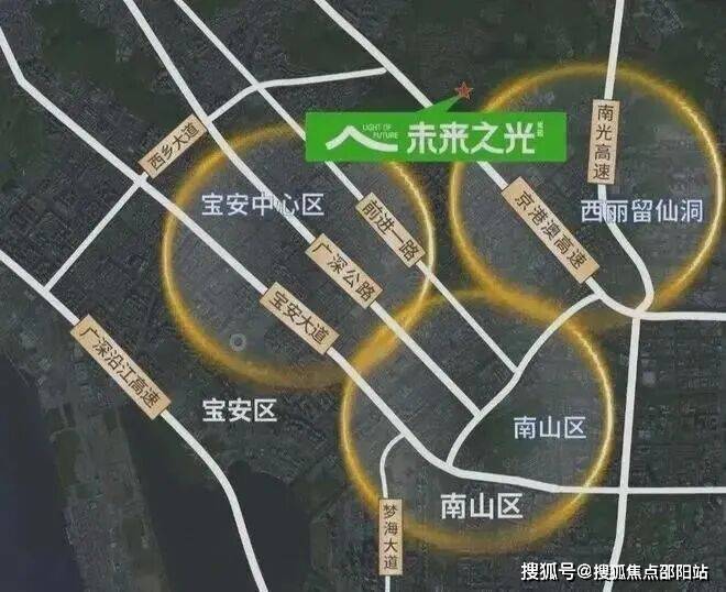 宝安&南山双区驱动 西部湾区城市带,近邻南山科技园、留仙洞总部基地、宝安中心、前海自贸区等片区,集合向西发展带优质城市资源。