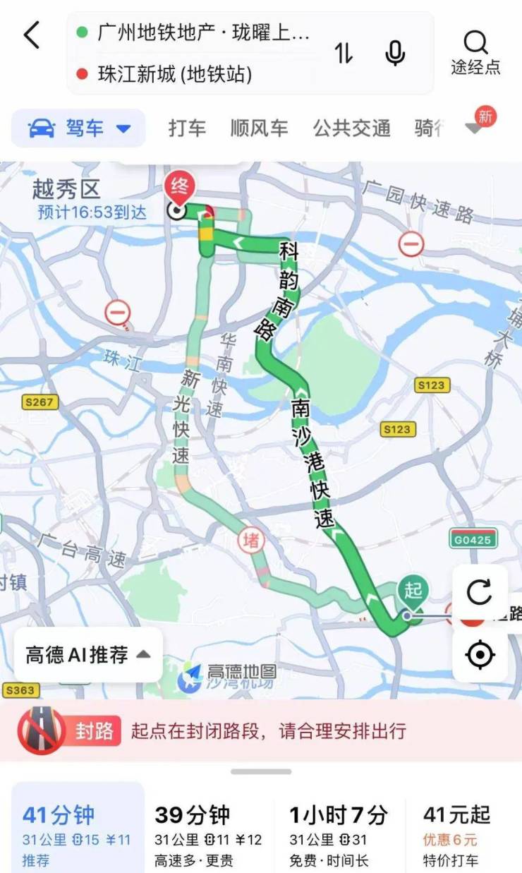 自驾的话也是非常方便,项目距离南沙快速港仅900米,附近还有亚运大道,接下来小何就给大家实测一下自驾或地铁通勤珠江新城、琶洲需要多久: