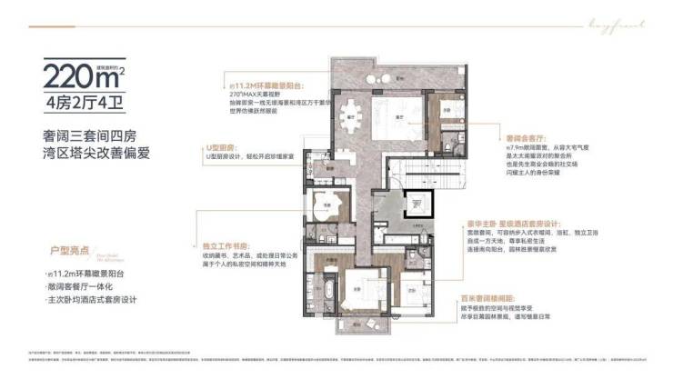 联检码头:国家一类口岸,约277万年平均通行人次,直达深圳福永和蛇口、香港、澳门等码头, 建面约15万㎡会展中心:集展览、会议等功能为一体,建成运营一年预计达100万人次, 滨水休闲商业街:世界滨水街区的全新范本,建筑面积约9.3万方风情商业街区,汇聚环球优质品牌资源,激活水岸体验,打造全新而缤纷的消费场景, 菁英品质教育:项目规划自带一所36班公办小学、一所9班幼儿园、一所6班幼儿园,让孩子成才更近一步, 全系海景住宅:全面积段滨海美宅,湾区投资或居住的向往之地, 临湾高层办公:约3.9-4m层高,湾区海岸线是你的生意背景, 灵动办公产品:站上大湾区肩膀的灵动资产周边规划中山翠亨国家湿地公园、翠湖公园、金山公园、滨海公园等13大生态公园,项目外部紧邻海岸,近观绿林,被自然景观资源环抱,项目内东部规划 滨海休闲假日公园,将度假的感受注入每日生活空间。 一线临海住宅,合理的空间利用保证更大利用率。 同等面积多出市面上其他产品一个卫生间。从单身到三代同堂,每个家庭阶段都能有舒适的体验 湾区灵动资产,低门槛入手湾区地标综合体,灵动百变空间, 宜自用宜出租,坐享万千人流红利。