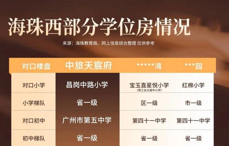 中旅·天宸府不一样。根据去年招生公告,项目对口的昌岗中路小学,直升广州市五中附属初级中学。(具体入读政策,以教育局最新公布为准)