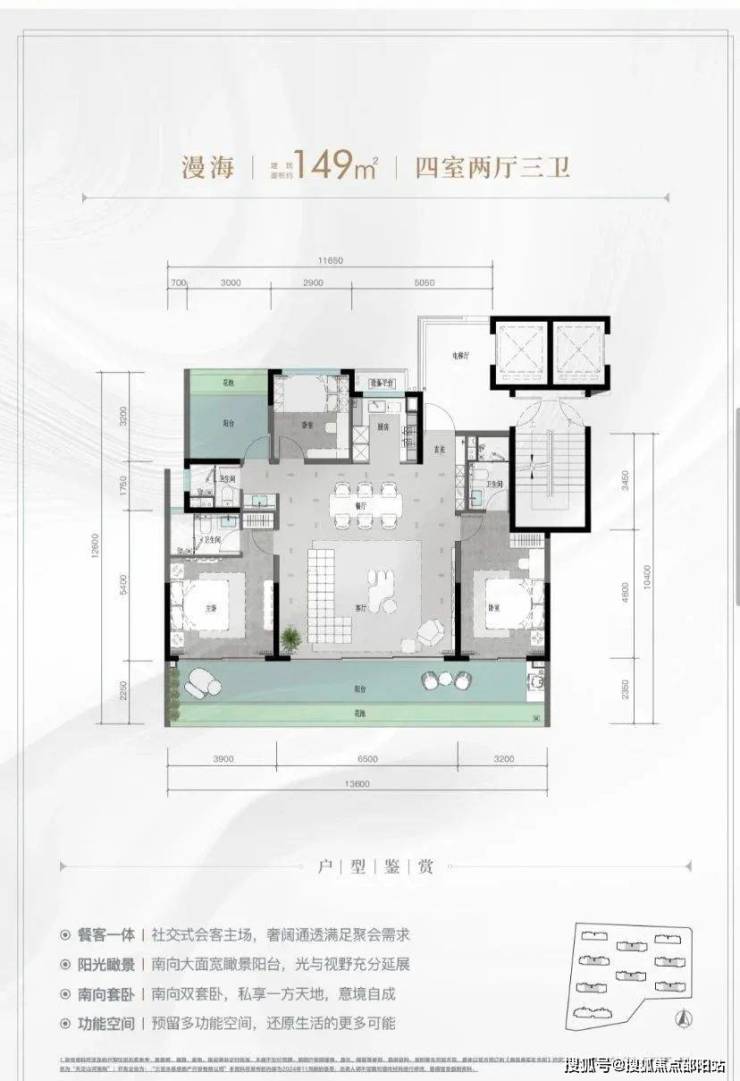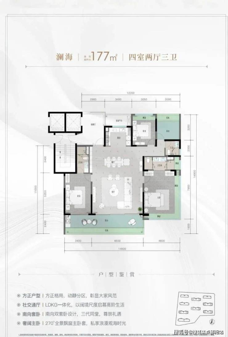 规划建筑面积约126-213㎡观海奢装大平层,约3.1米阔绰层高,部分户型创新设计270°全景飘窗主卧套、四开间朝南等,全成品高标奢装,营造全新舒居体验。