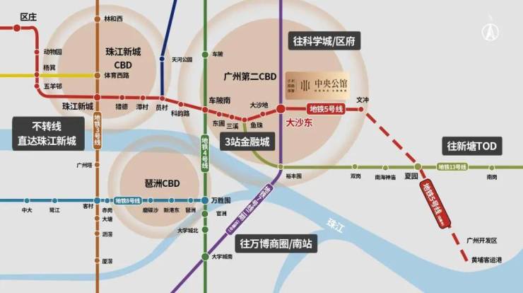 5号线——3站天河金融城,约26分钟直达珠江新城不换乘